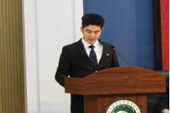 第二十四届学生会生活服务部负责人董浩楠同学宣读倡议书,号召学生代表在党的思想引领下,争做勤学善思、勇于担当的时代先锋,发挥模范带头作用。