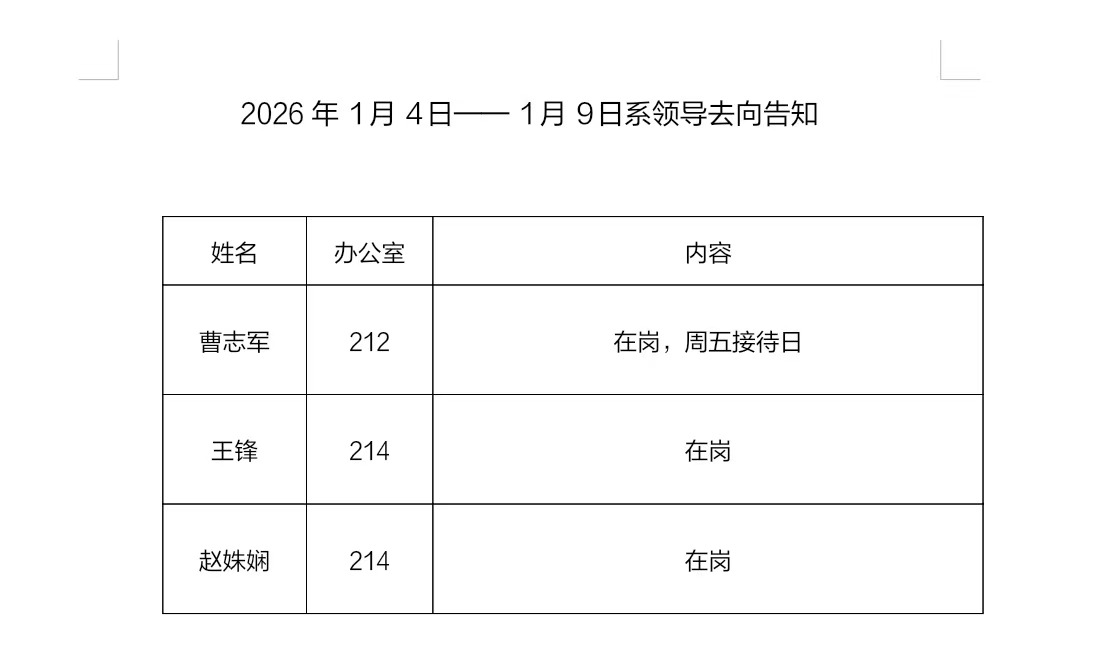 2026年 1月4日-- 1 月9 日系领导去向告知